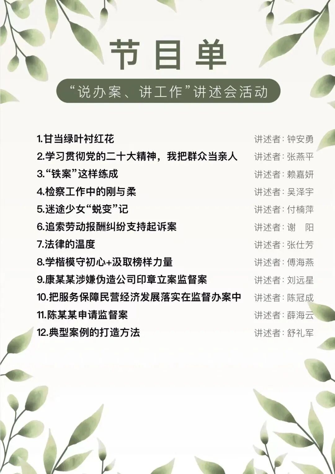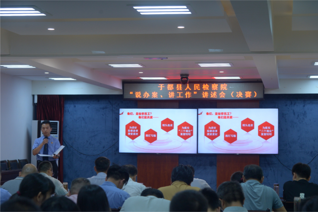 8月2日,于都县人民检察院举办“说办案、讲工作”讲述会活动。此次活动共32名青年干警参加,通过预赛打分,有12名干警进入决赛。大家通过“演示文稿+讲述”的方式,分享了自己精彩的办案故事,为全院检察干警带来一场法治盛宴。