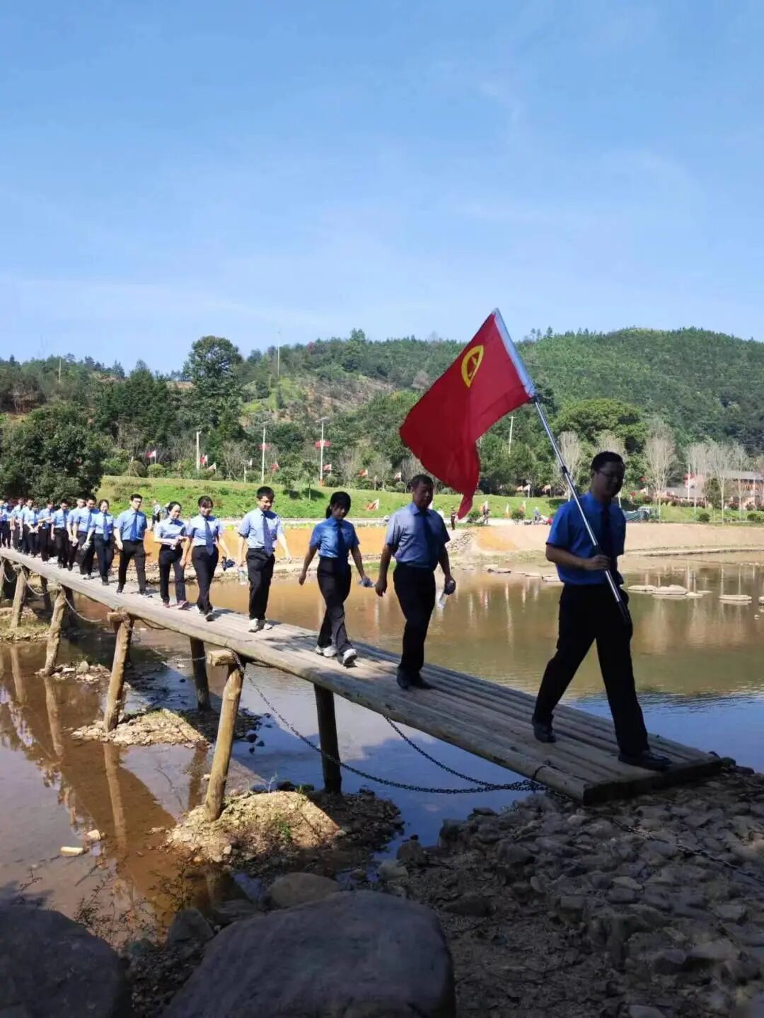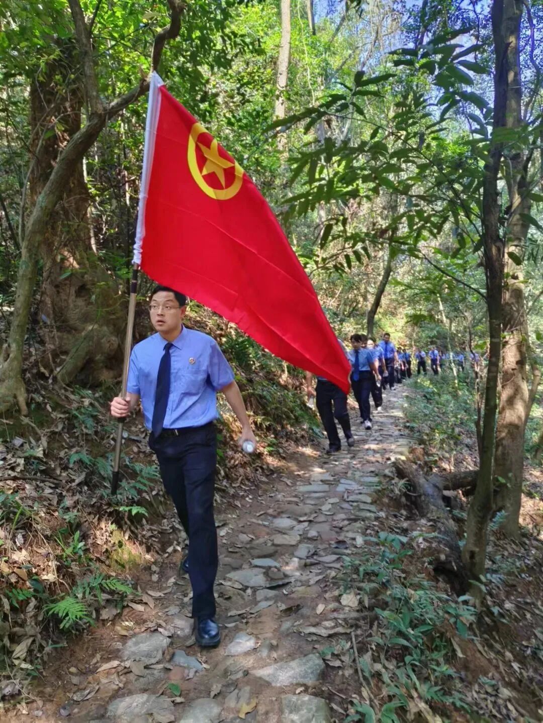 两级检察院二十余名青年干警来到于都县祁禄山镇金沙村,步履铿锵地行进在红军长征小道上,重温红军路之旅,追寻革命先辈的光辉足迹,实地感受红军长征的艰辛与豪迈,感悟伟大长征精神。