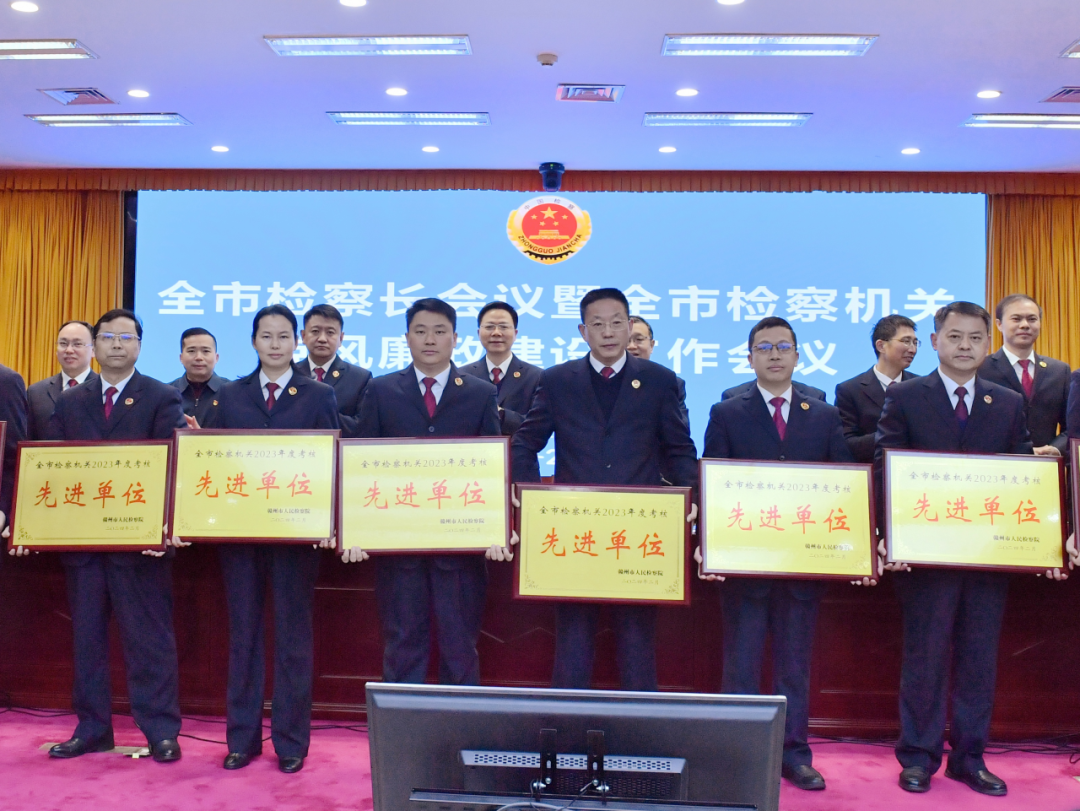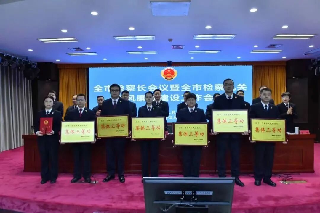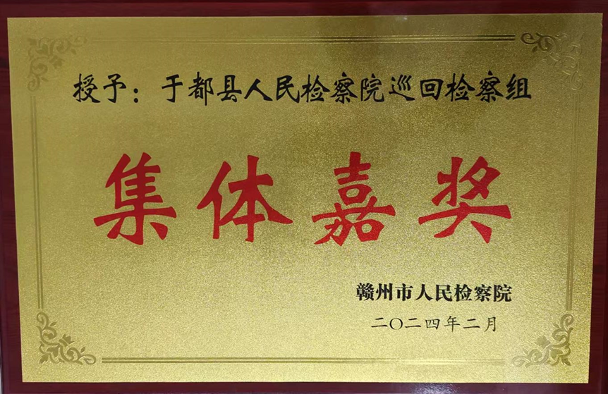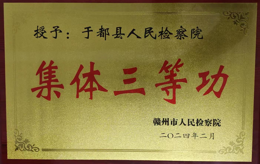 2月28日上午,赣州市人民检察院召开全市检察长会议暨全市检察机关党风廉政建设工作会议。会议表彰了2023年度全市检察机关先进集体和先进个人。于都县人民检察院荣获“全市检察机关2023年度考核先进单位”、集体三等功,1个办案团队获集体嘉奖表彰、1名干警获个人荣誉表彰。这是继2023年11月,该院荣获首届“全省检察机关先进基层检察院”后,又一次荣获多项荣誉表彰。 于都县人民检察院党组书记、检察长曾萌芽(右一)上台领奖