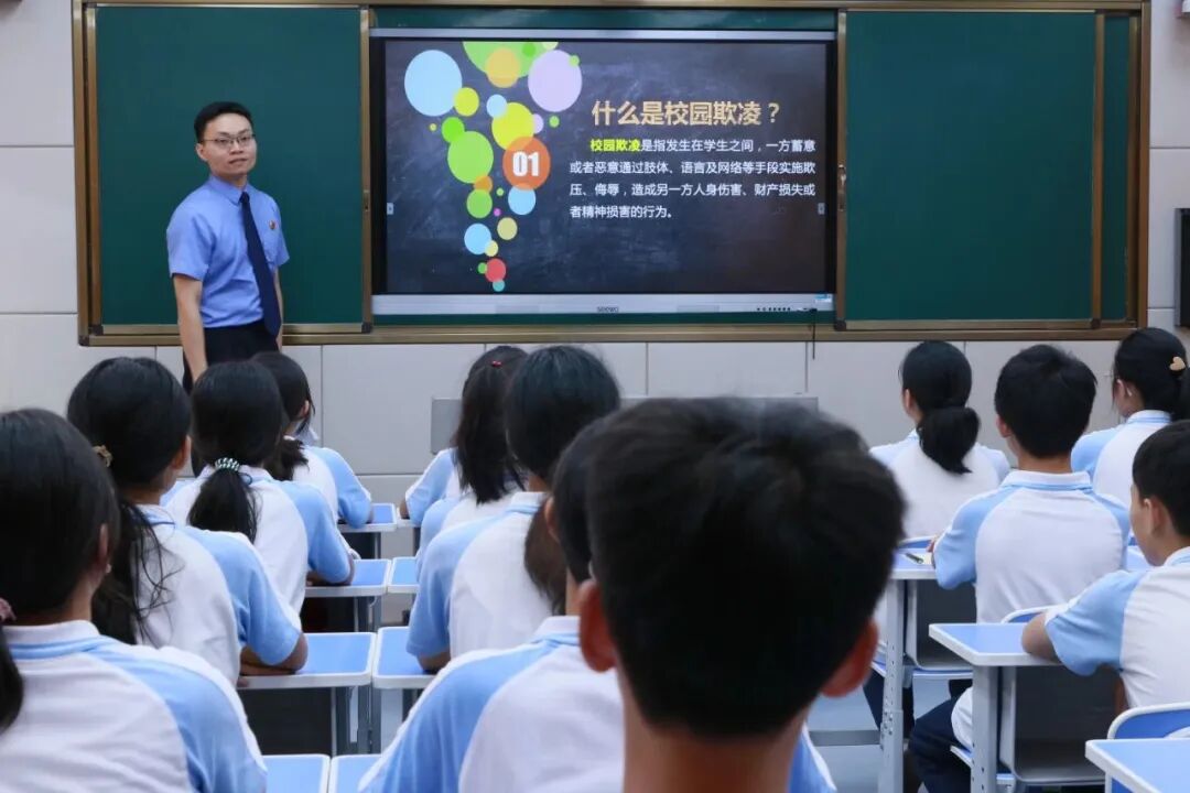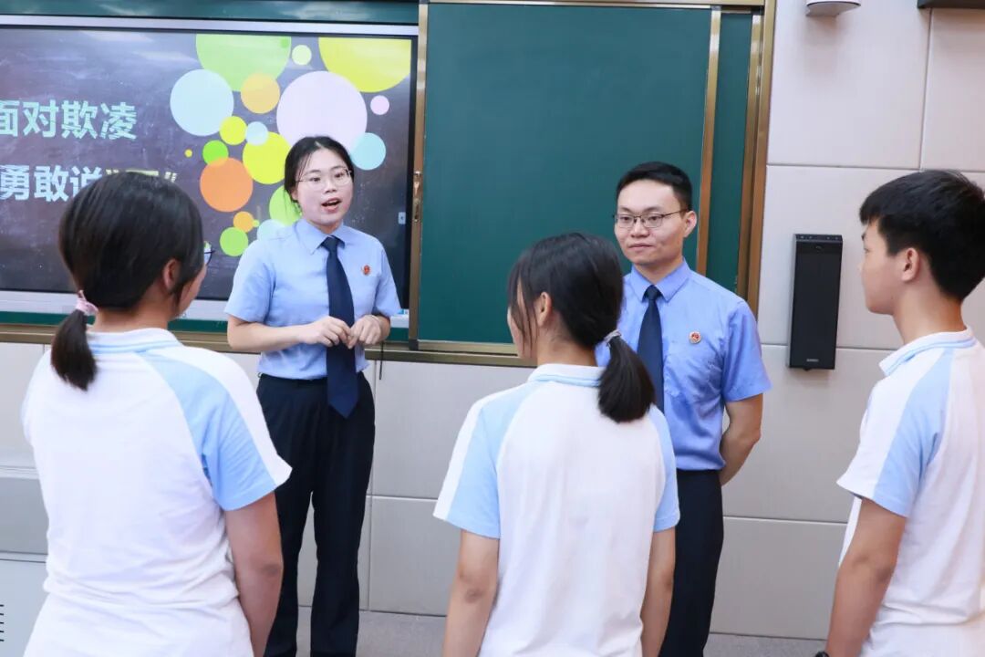课堂上,检察干警充分考虑学生普遍喜欢短视频这一特点,通过教学与视频相结合的方式,从“什么是校园欺凌”“校园欺凌的类型”“校园欺凌的角色和危害”“如何远离校园欺凌”入手,用通俗易懂的语言,深入浅出介绍校园欺凌的主要内容。教育同学们掌握校园欺凌的危害,法律对校园欺凌有哪些规定,以及在遇到校园欺凌应该如何应对等方面的知识,让同学们在了解校园欺凌的同时,加深对法律知识的学习,提升学生的法治意识。法治教育孵化基地是于都县检察院与于都县教育科技体育在思源实验学校共同创建的法治品牌,目的在于通过心理干预、法治教育、警示教育等方式,形成一套可复制、可推广的法治教育模式,全面加强对未成年人的法治教育与司法保护。下一步,于都县检察院将根据学校对法治课效果的反馈,进一步完善法治教学课件内容,将课件共享给其他学校和法治副校长,让法治教育走进更多学生课堂,进一步提升法治教育孵化基地的“传帮带”作用,努力使尊法、学法、守法、用法在全社会蔚然成风。 |
