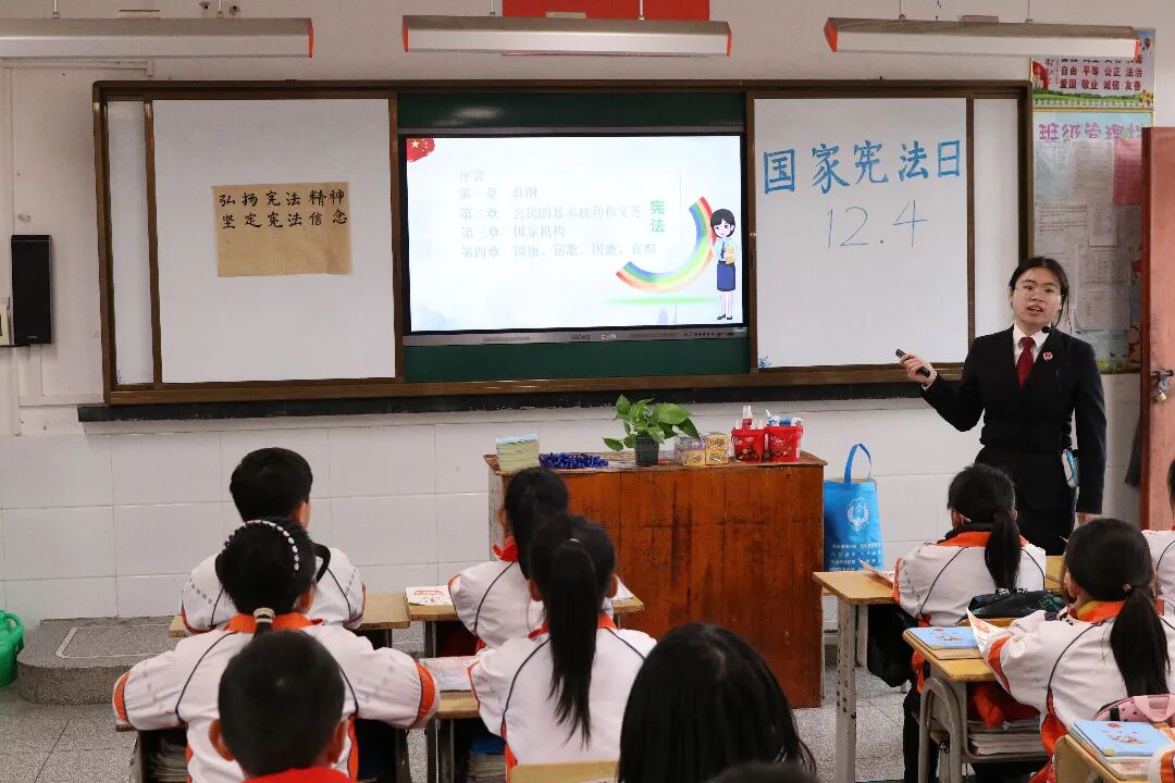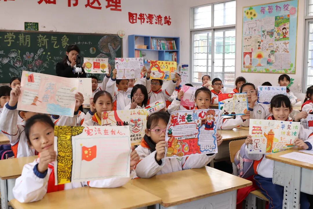 随着宪法歌谣前奏响起,同学们以饱满的热情和嘹亮的歌声表达了对宪法的尊崇和热爱之情,极大的调动了同学们学习宪法的积极性。最后,同学们右手举拳,在检察干警的带领下,庄严宣誓,通过“宪法宣誓”仪式,全体师生深刻感知宪法知识和宪法精神,将尊重宪法、信仰宪法、维护宪法的观念根植心中,使爱宪法守宪法成为共识和自觉行动。