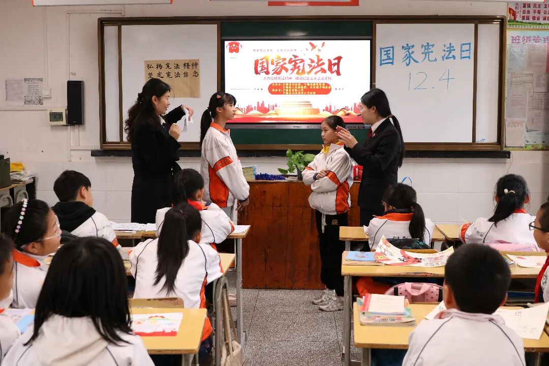 直播活动中,检察干警围绕《宪法在我们身边》这一主题,深入浅出地向学生们详细讲解了什么是宪法,宪法的地位如何,宪法与日常生活有什么联系等丰富知识,并从“宪法与我们的一生”的角度讲解了相关宪法条文。同时针对小学生的年龄特点,精心设计了“你来比划我来猜”“快问快答”“猜谜语”等互动小游戏,让难懂的法律知识转化为有趣的游戏,使同学们沉浸在游戏中同时,对如何运用法律保护自己有了更直观而深刻的理解。